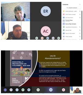 El 19 de Enero a las 9:00 a.m. mediante el enlace https://bit.ly/3CY0ccrarm  se realizó la conferencia APORTES DE LA MARINA MERCANTE A LA ECONOMIA NACIONAL – Contexto histórico y prospección a futuro, impartida por el Capitán German Rojas Hernández, Agregado Naval de Colombia en Jamaica y estudioso de la Marina Mercante Colombiana, invitación a la que acudió buena parte de los Asociados, quienes agradecieron al Capitán Rojas su iniciativa de compartir este tipo de estudios históricos, estadísticos e investigativos y del cual surgió la propuesta de que dicha información sea presentada en el Comité Ejecutivo del Clúster Marítimo el próximo 09 de Febrero.