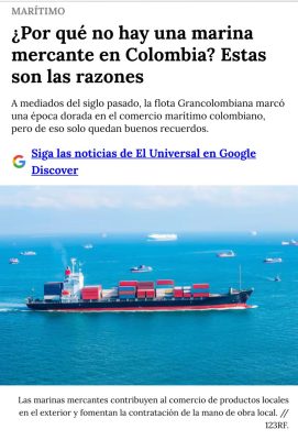 El 26 de mayo, el diario El Universal, en su Edición Especial Marítima, presentó un panorama de la marina mercante en Colombia con la participación de empresas e instituciones del sector que, desde 2016, conmemoran el Día de la Marina Mercante cada 8 de junio. En esta edición, ARMCOL aportó información destacando el potencial de la bandera colombiana. El artículo también resaltó la necesidad de políticas públicas para fortalecer el sector, y abordó temas de seguridad marítima y los impactos de la pandemia, como desvíos en rutas, cierres en las operaciones de algunos puertos y percepciones de inseguridad.